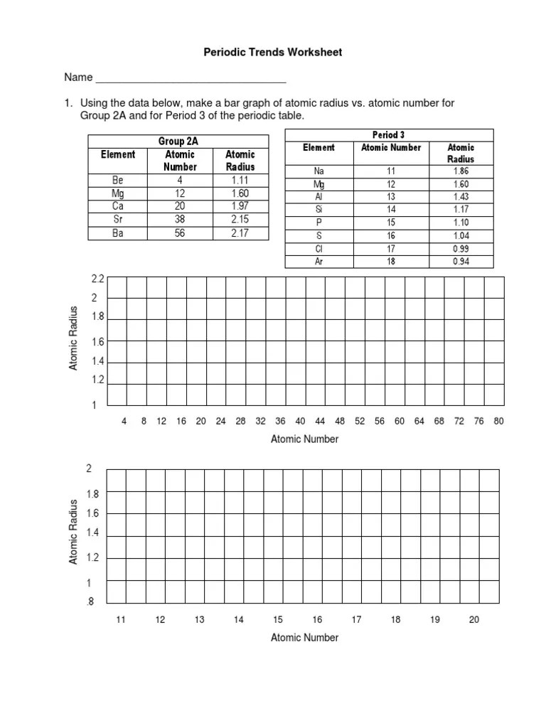 What trend in atomic radius occurs down a group on the periodic table? Support your answer, using examples from 3 groups. Support your answer, using examples from three groups. In this workshop you will first review the periodic . Complete pogil activity and answer questions as you go. In general, what is the trend in atomic radius as you go . Use your notes to answer the following. Use the link below to answer the following questions:. Use your notes to answer the following questions. What is the trend in atomic radius as you go across a period (left to right) ? Periodic trends can the properties of an element be predicted using a periodic table? In general, what is the trend in atomic radius as you go down a group in model 1? For example, both ru and os have a radius of 130 pm.